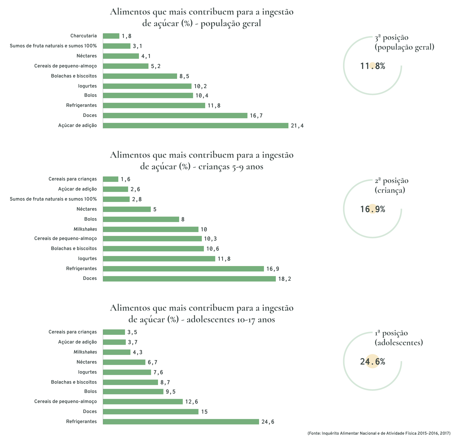 As bebidas refrigerantes são um dos alimentos/bebidas que mais contribui para a ingestão de açúcar na população portuguesa, assumindo a primeira posição nos adolescentes.